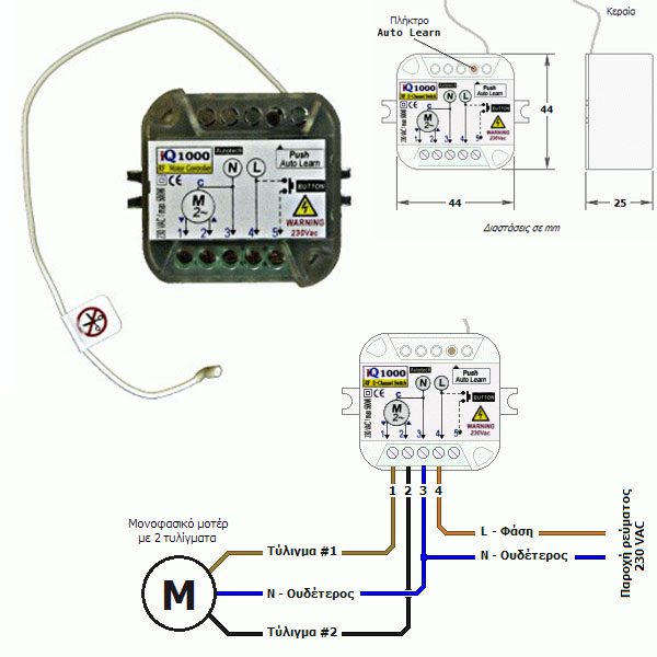 Είναι κατάλληλος για ρολά που τροφοδοτούνται από μονοφασικό εναλλασσόμενο ρεύμα 230 Volt AC και διαθέτουν δικούς τους τερματικούς διακόπτες